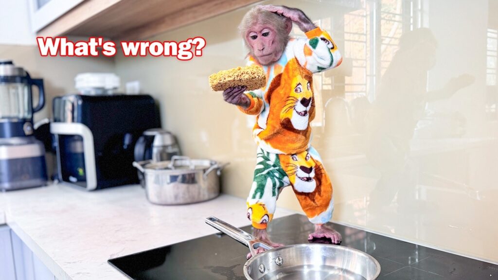 Bibi watched eagerly, but after a few minutes, the noodles were still too hard. “Hmm, they’re not cooking properly,” he said, frowning. “I need more heat!”